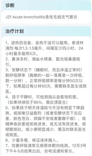I evaluate that the child has not reached the indication of hospitalization at present, and there is no clear manifestation of bacterial infection. The high probability is still viral infection. After taking a throat swab sample and doing targeted sequencing, he didn’t prescribe medicine, so he was told to go home for observation and follow up online. I also repeatedly reminded that if the symptoms get worse, I need to be hospitalized.